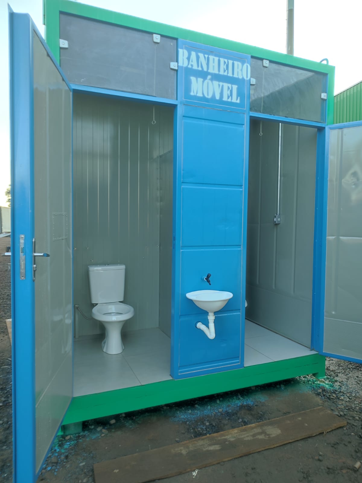 Container completo com piso cerâmico, divisórias em metalon com folha em zinco, vasos sanitários com caixa acoplada, pias de coluna em louça, box com divisórias, janelas blindex, portas de ferro com e sem acessibilidade, hidráulica e elétrica completa.